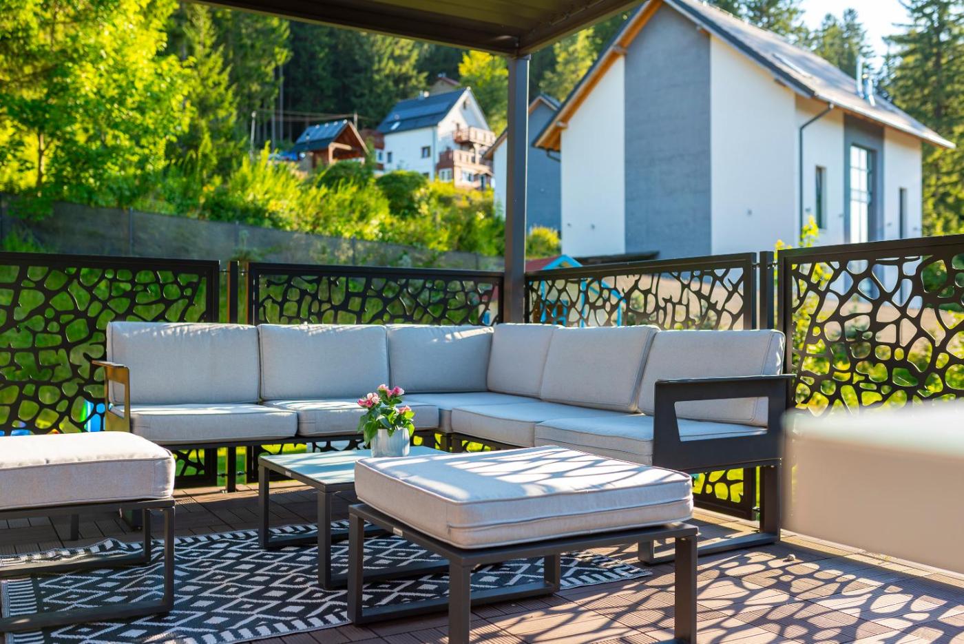 Willa typu Deluxe. This villa features a sauna. Boasting a private entrance, this spacious villa also includes 1 living room, 5 separate bedrooms and 2 bathrooms with a shower. Guests will find a stovetop, a refrigerator, a dishwasher and kitchenware in the fully equipped kitchen. The villa also features a barbecue. Featuring a terrace with garden views, this villa also offers a washing machine and a flat-screen TV with streaming services. The unit has 8 beds. Powierzchnia pokoju ok.: 240 mkw.